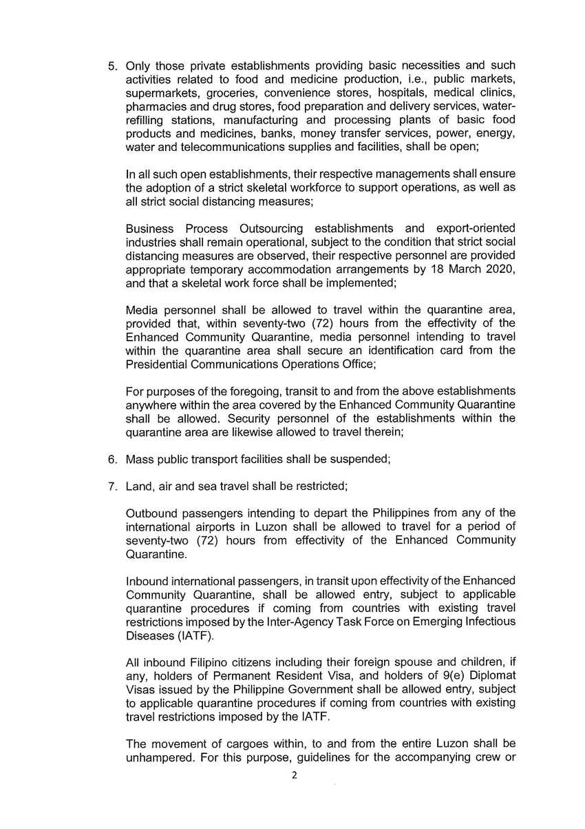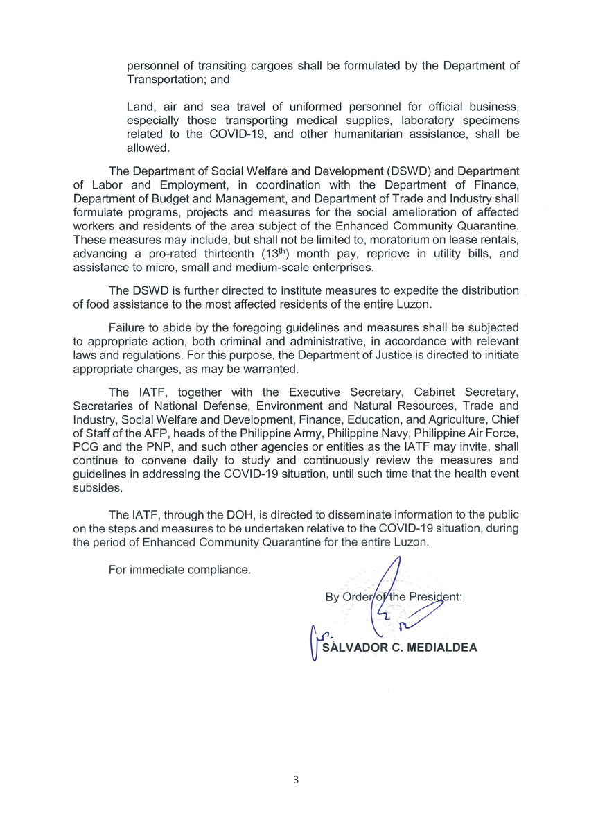 Community Quarantine Over the Entire Luzon and Further Guidelines for the Management of the Coronavirus Disease 2019 (COVID-19) Situation